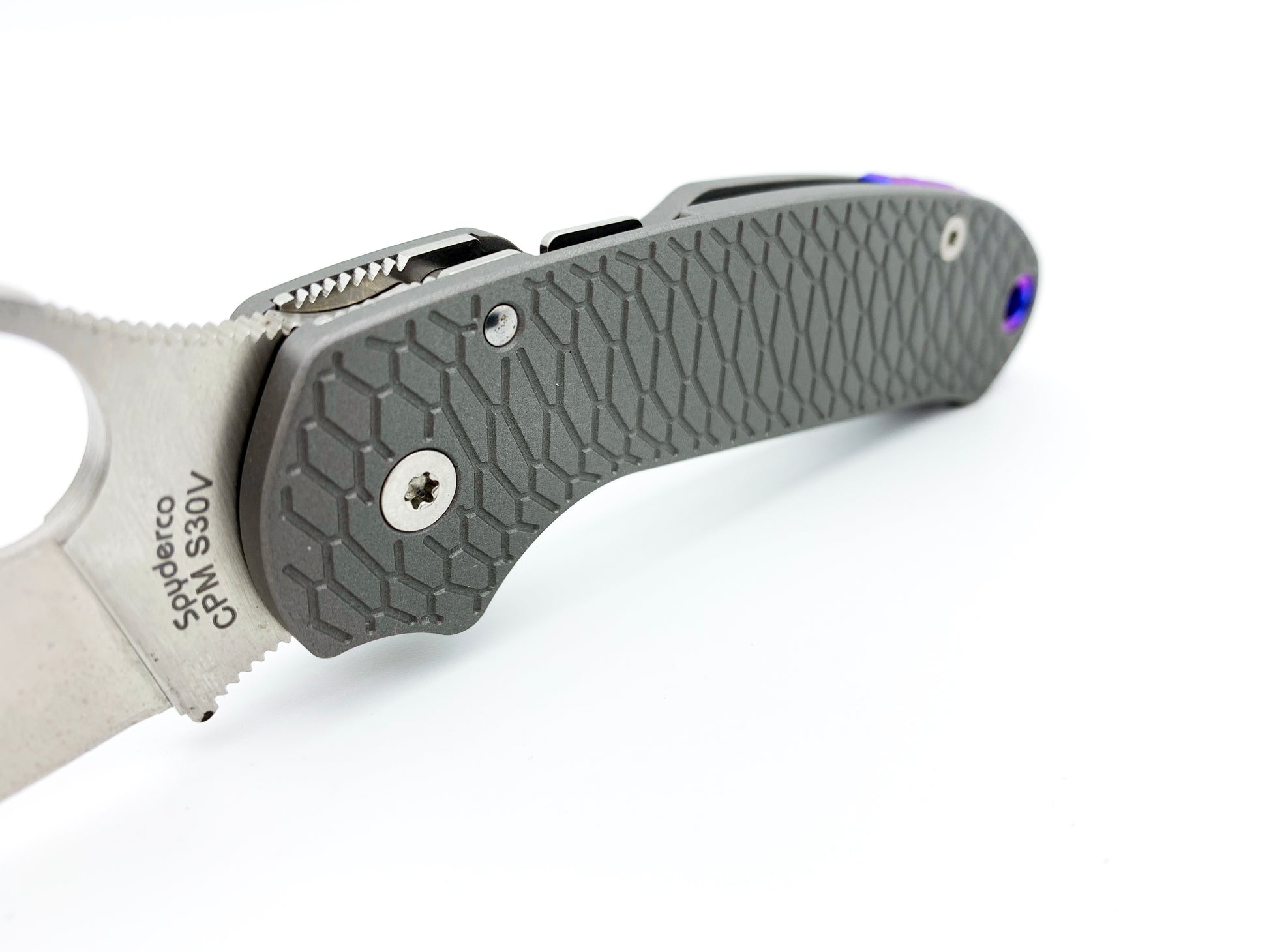 Titanium Hexi Scales for Spyderco Para 3 Skinny - Right Hand Tip Up Carry