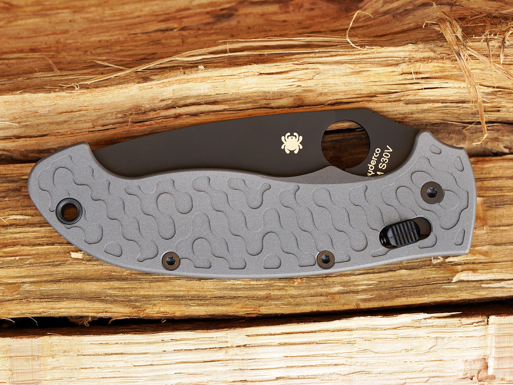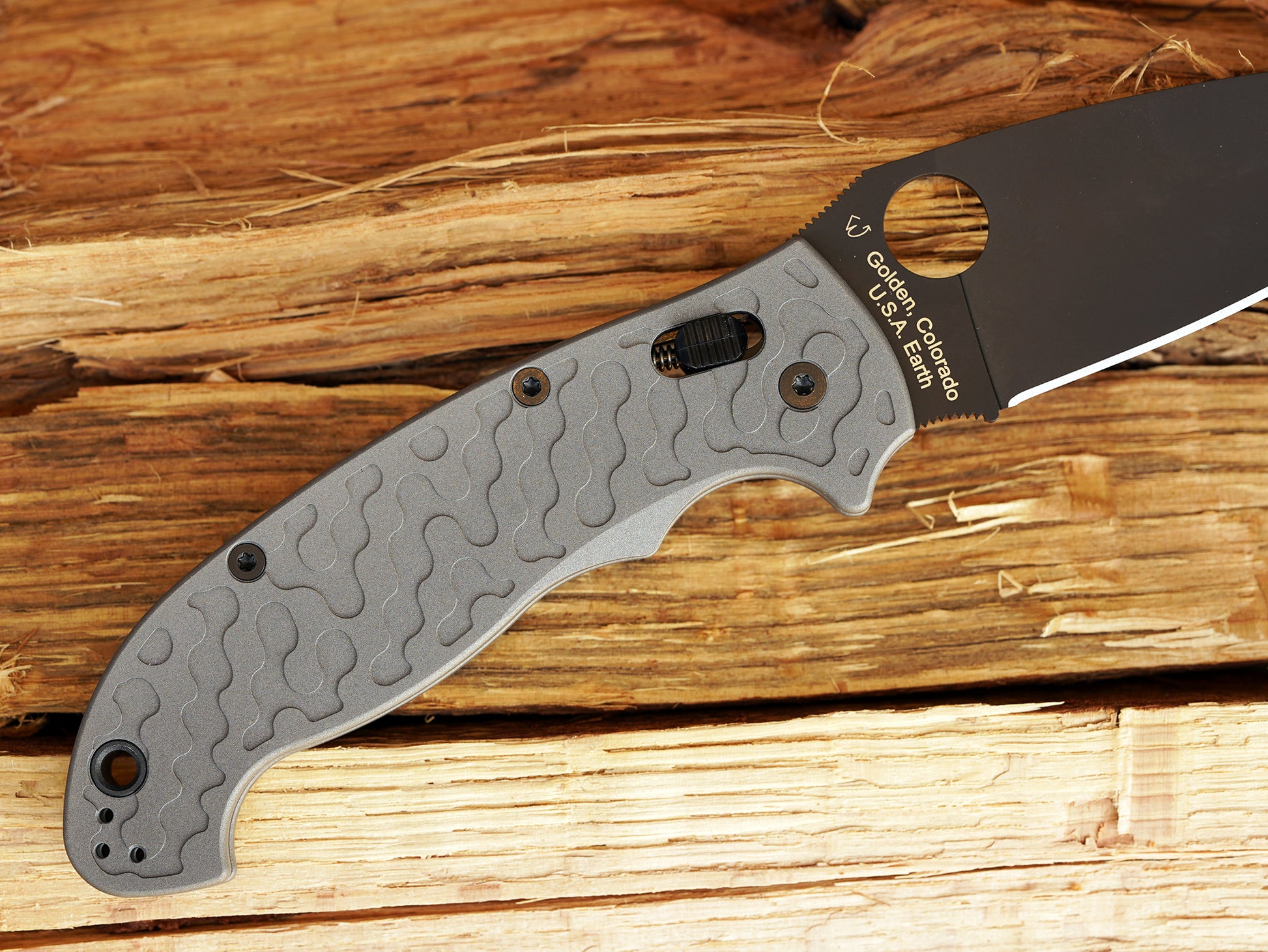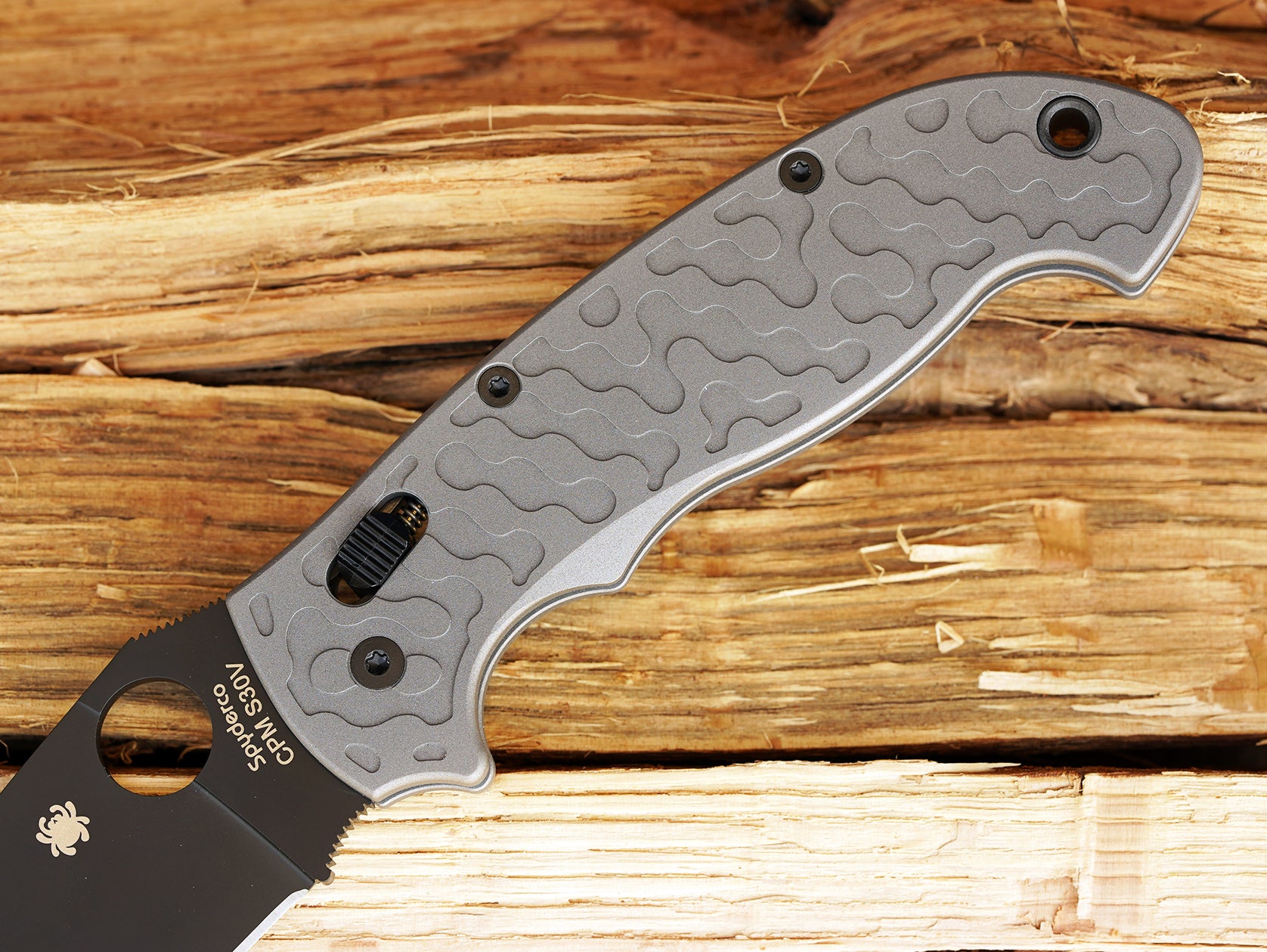 Titanium Camo Scales for Spyderco Manix 2 XL - AB (Aluminum Blast) - Linerless & deeper carry mod