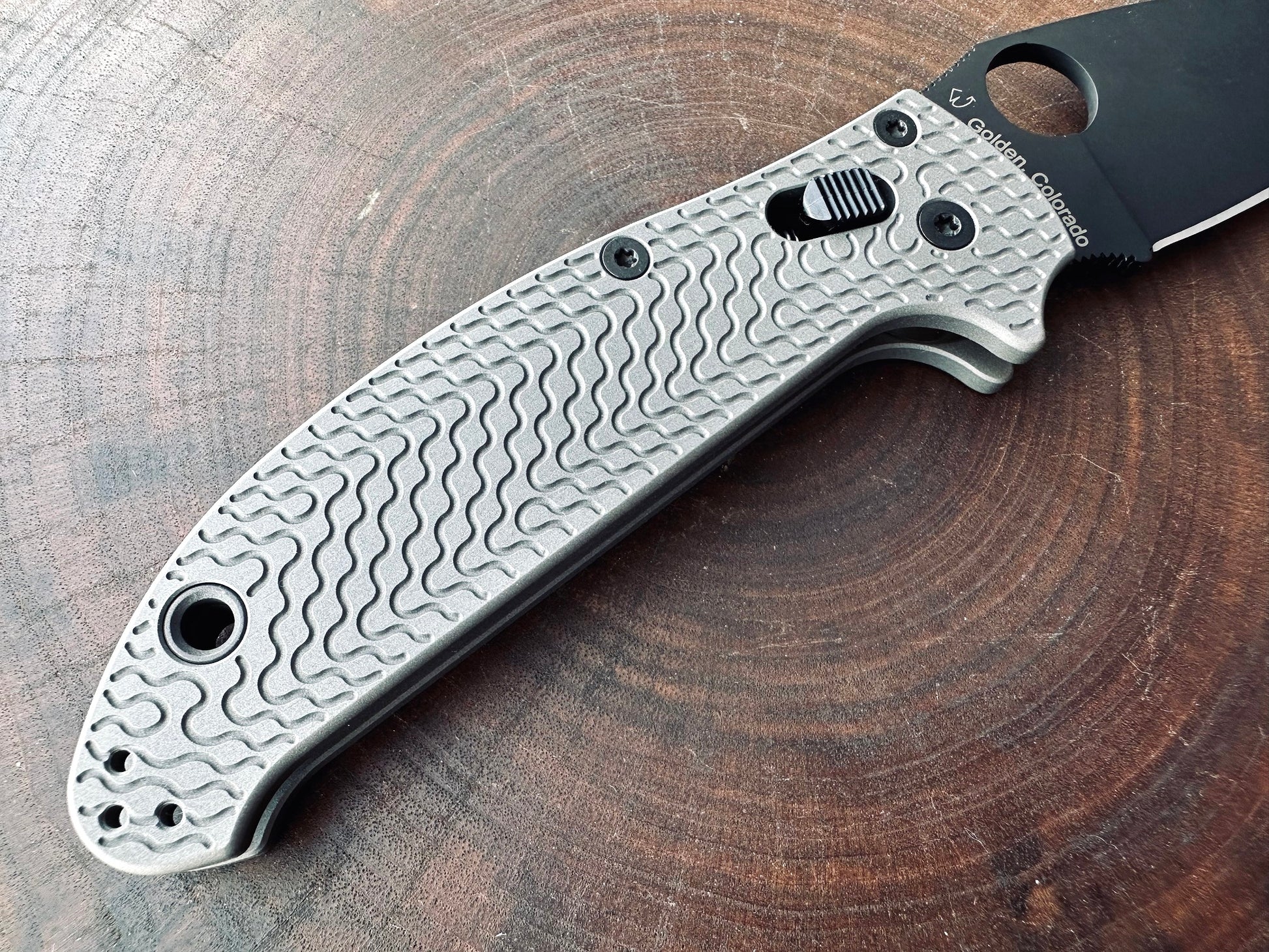 Titanium Critter Scales for Spyderco Manix 2 Skinny - Aluminum Blast - Linerless mod