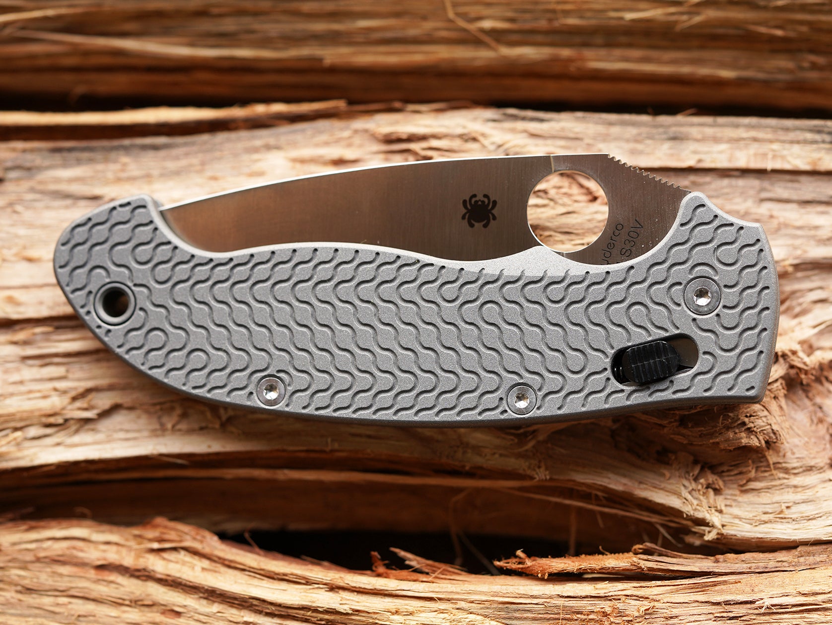 Titanium Critter Scales for Spyderco Manix 2 XL - AB (Aluminum Blast) - Linerless & deeper carry mod