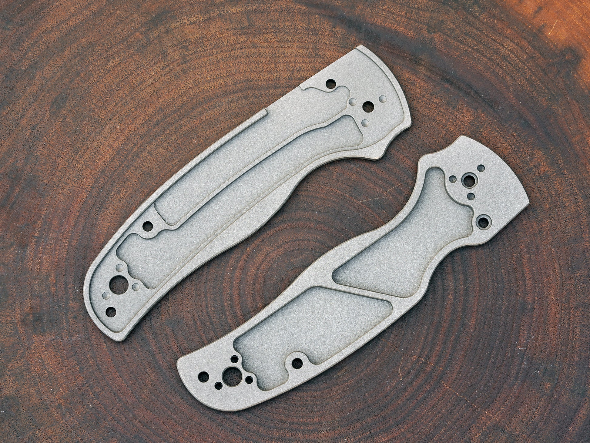 Titanium Critter Scales for Spyderco Shaman - Media Blast - Half Liner Delete