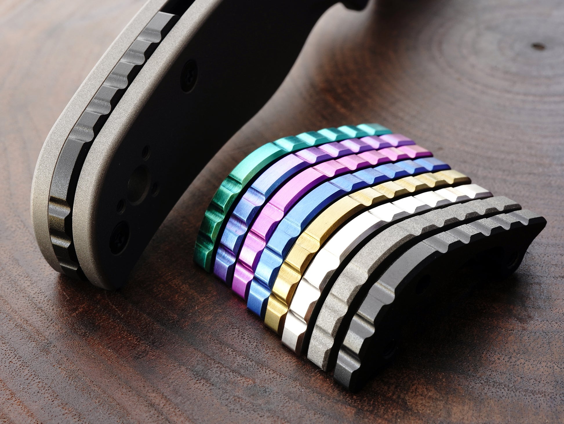 Titanium Gear Backspacer for Spyderco Shaman. The weight of the ti backspacer is less than half the weight of stock at about .15oz