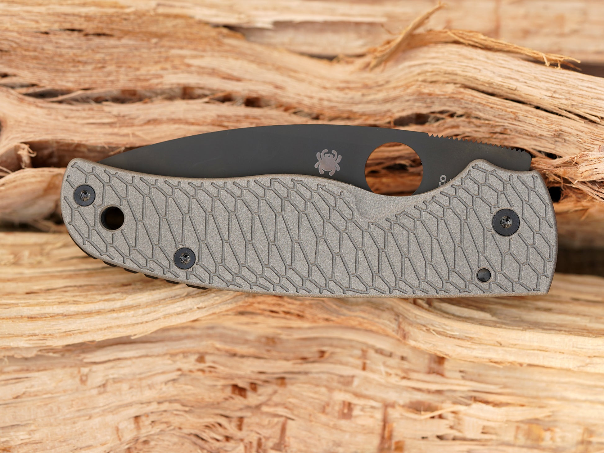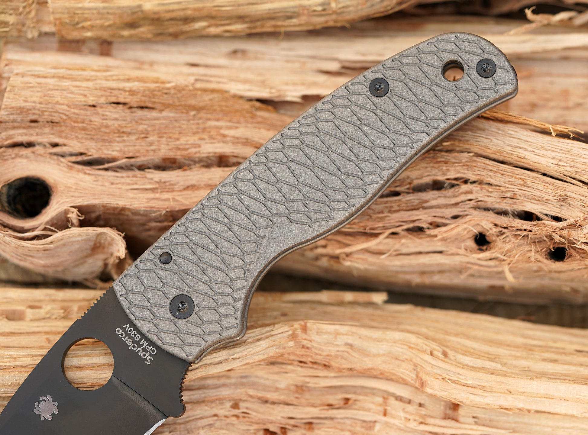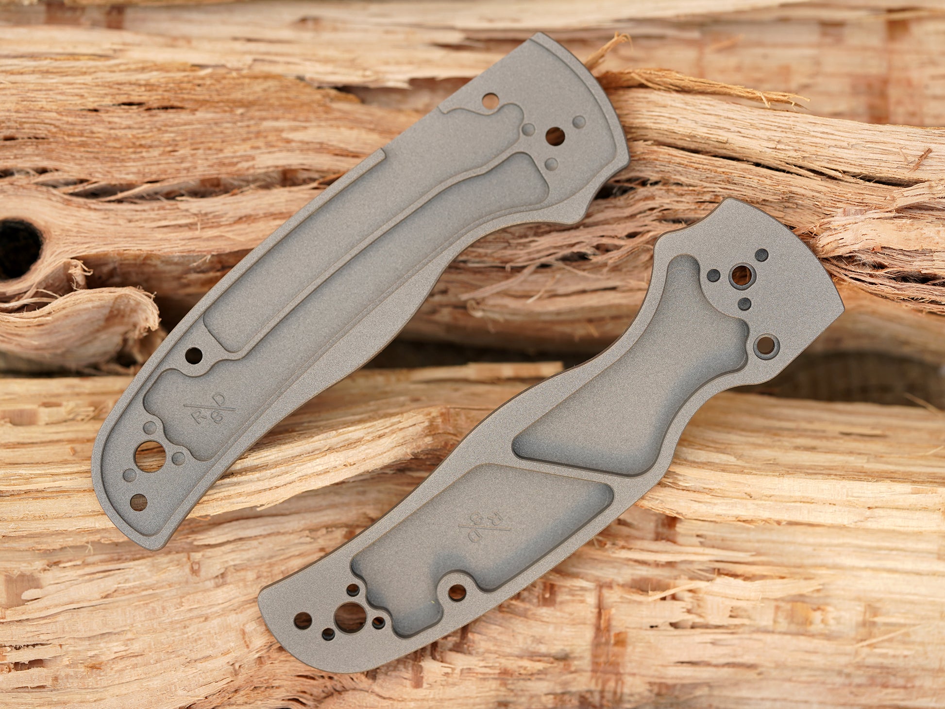 Titanium Hexi Scales for Spyderco Shaman - AB (Aluminum Blast) - Half Liner Delete