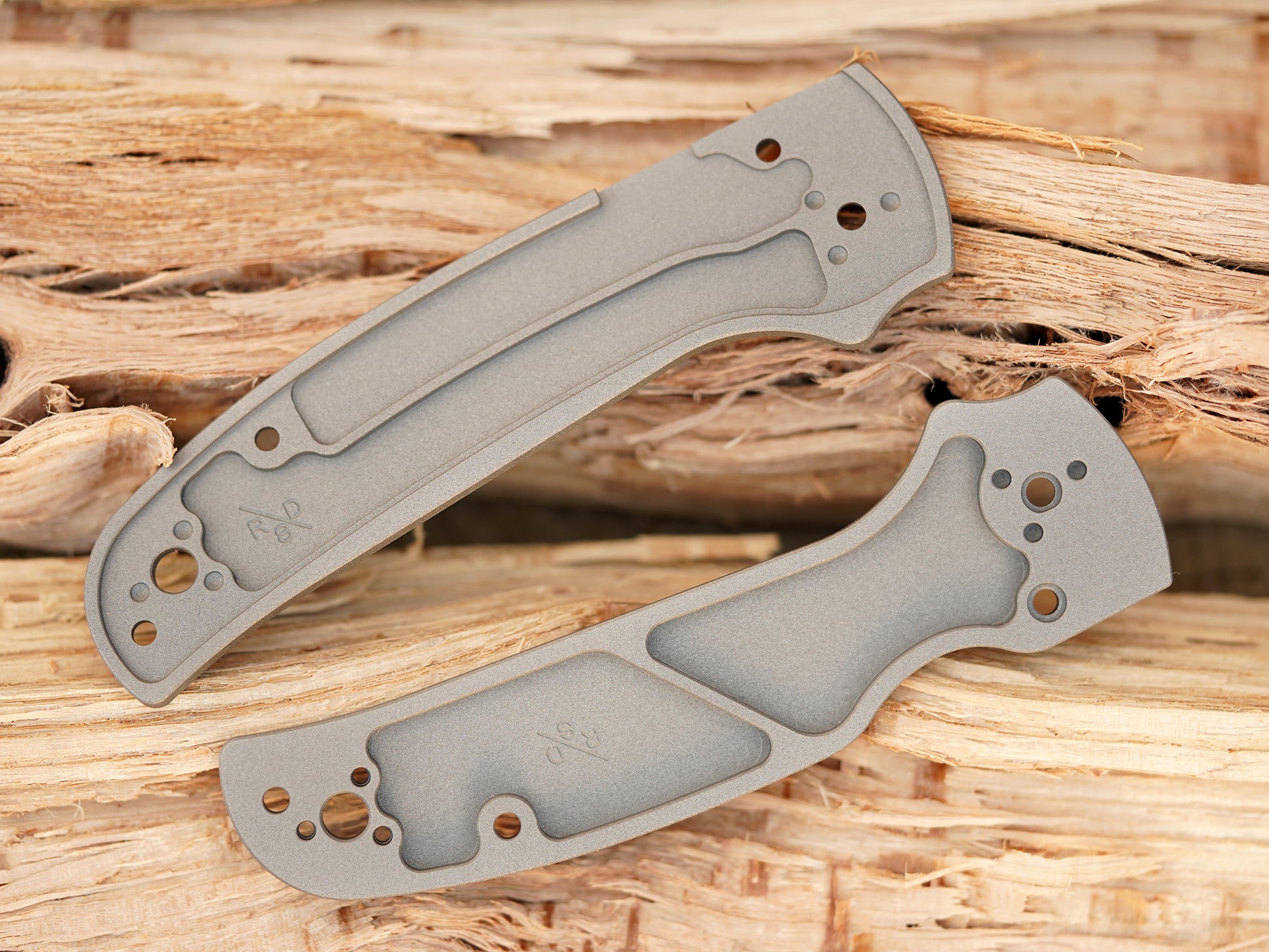Titanium Hexi Scales for Spyderco Shaman - Skinny - AB (Aluminum Blast) - Half Liner Delete