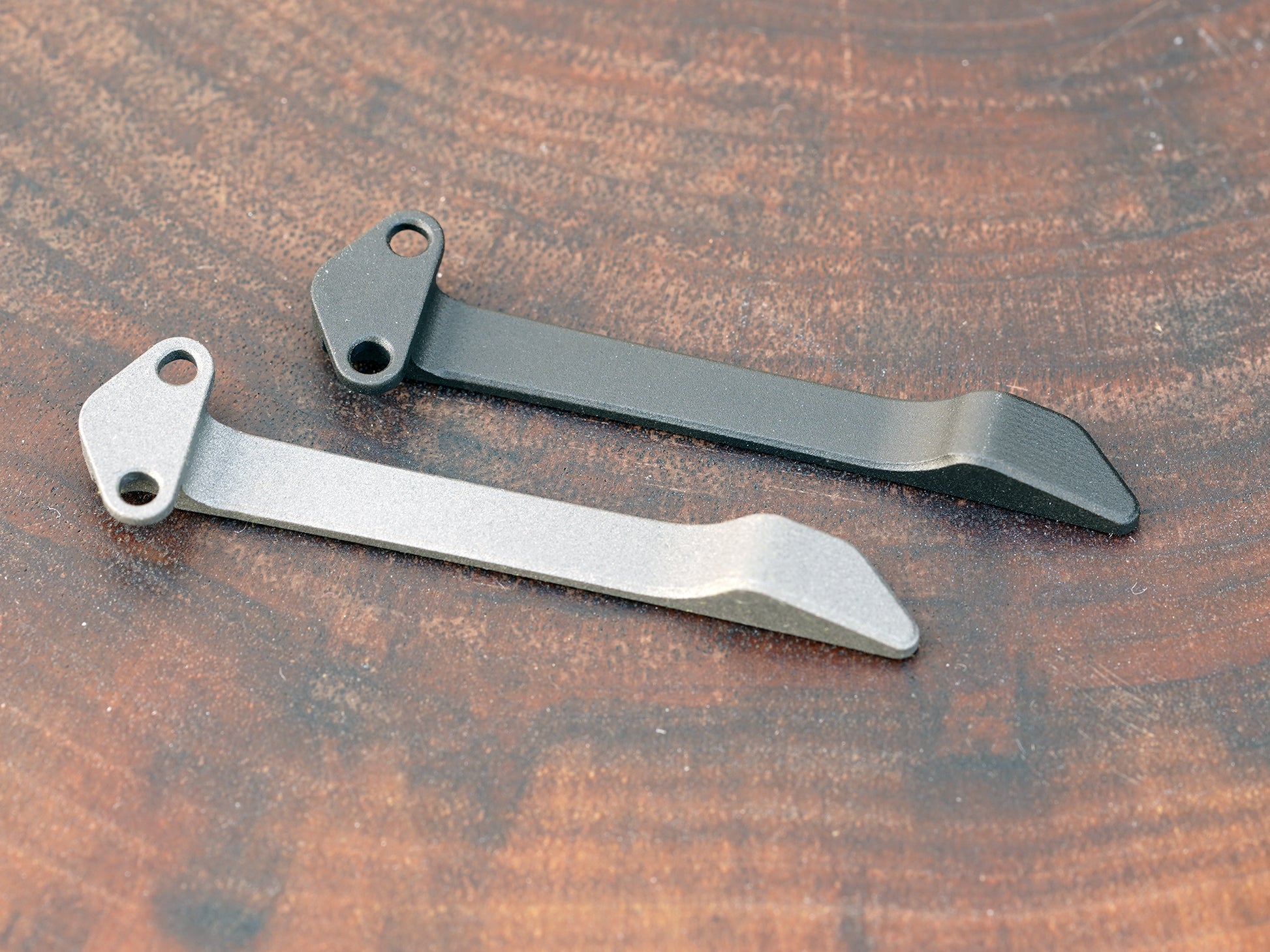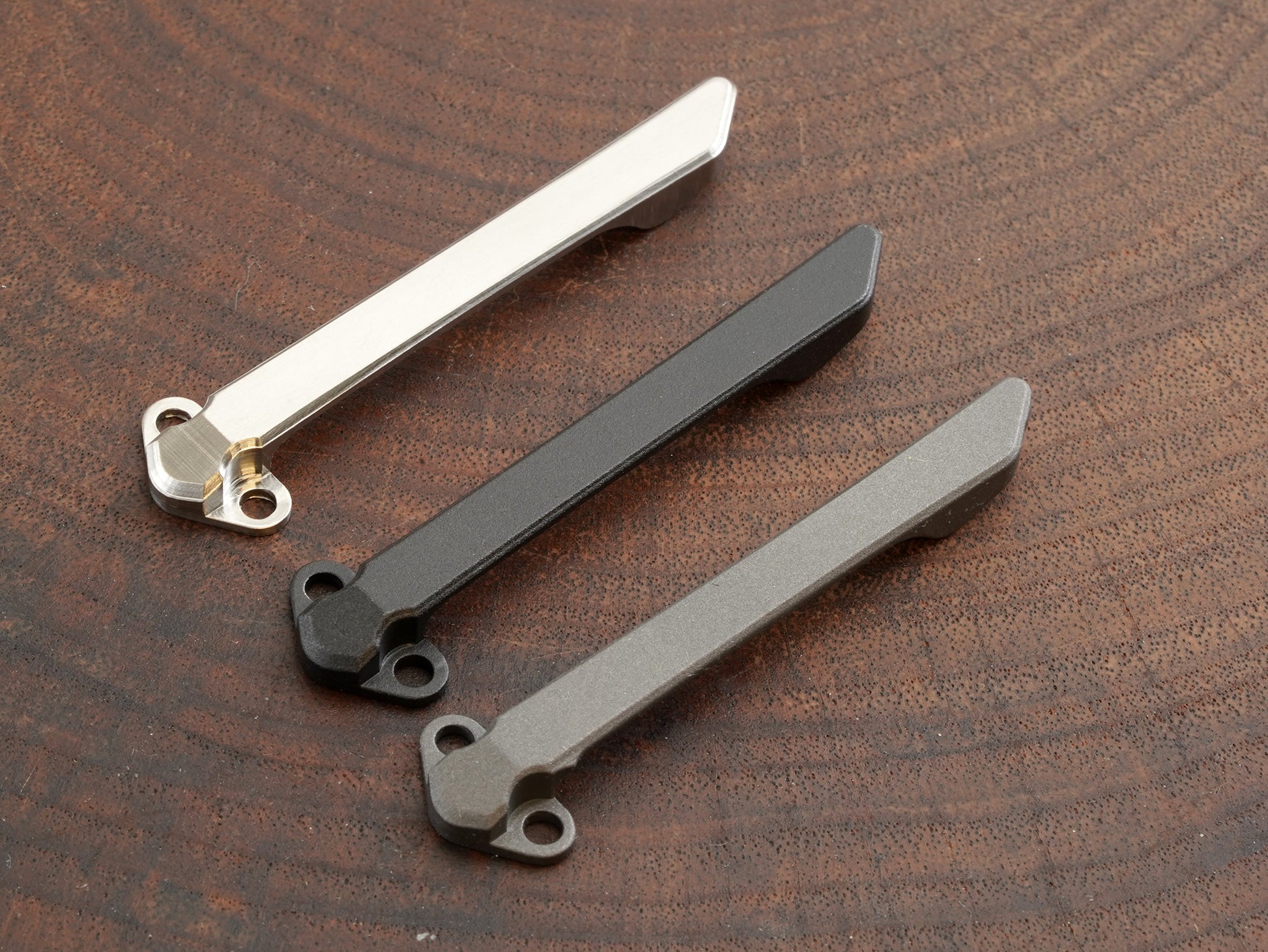 Machined pocket clip made out of high-grade 5 titanium.