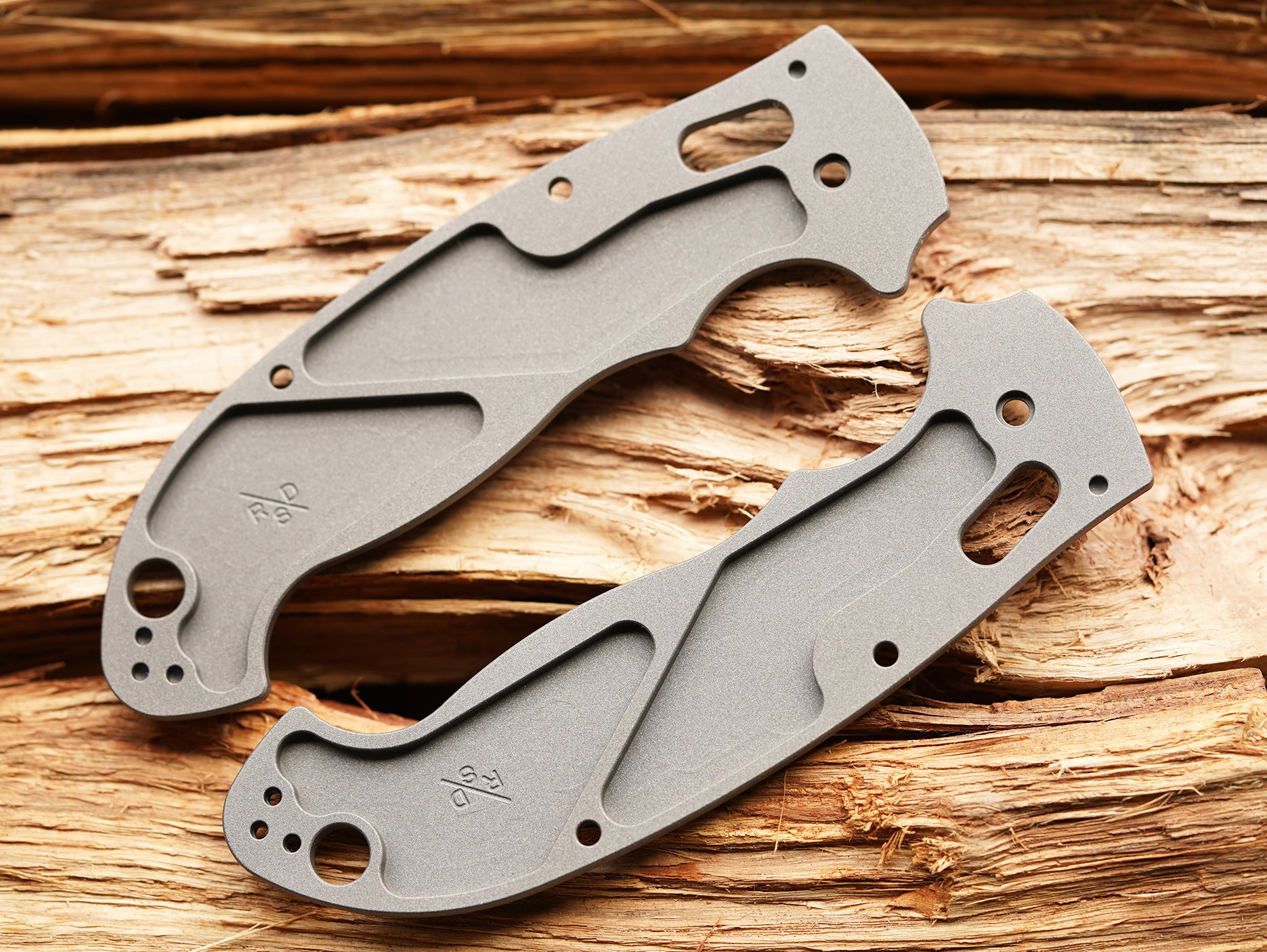 Titanium Scales for Spyderco Manix 2 XL - AB (Aluminum Blast) - Linerless & deeper carry mod