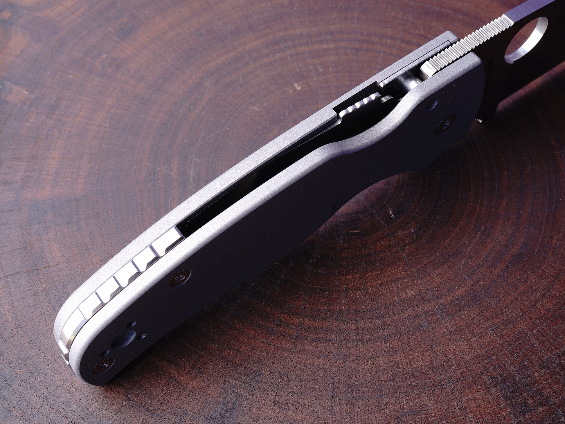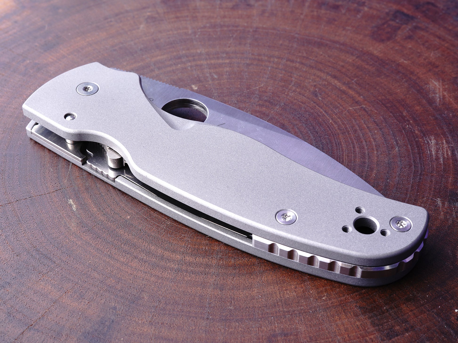 Titanium Scales for Spyderco Shaman - AB (Aluminum Blast) - Half Liner Delete